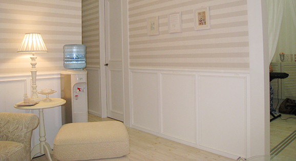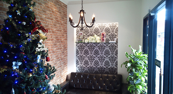 - ヨーロピアン調のエレガントで格式の高い空間を演出しました。柔らかく透明感のある白を基調とし、個室を設けくつろぎを第一に考えた店舗空間を提案致しました。