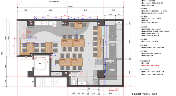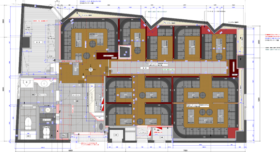 - 工期が非常に短かかった中で、お客様にご満足いただくのはもちろんのこと、働くスタッフの動線やレイアウト等の機能性、効率性にも重きを置きながら、高い集客効果を生むことを前提としてデザイン展開を致しました。